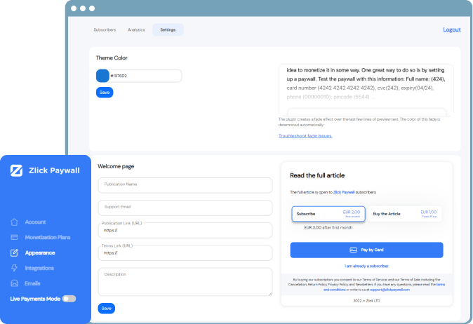 Zlick is a paywall and subscription management platform that focuses furthermost on the simplicity of installation for content creators and on the simplicity of going through the payment process for the end users.